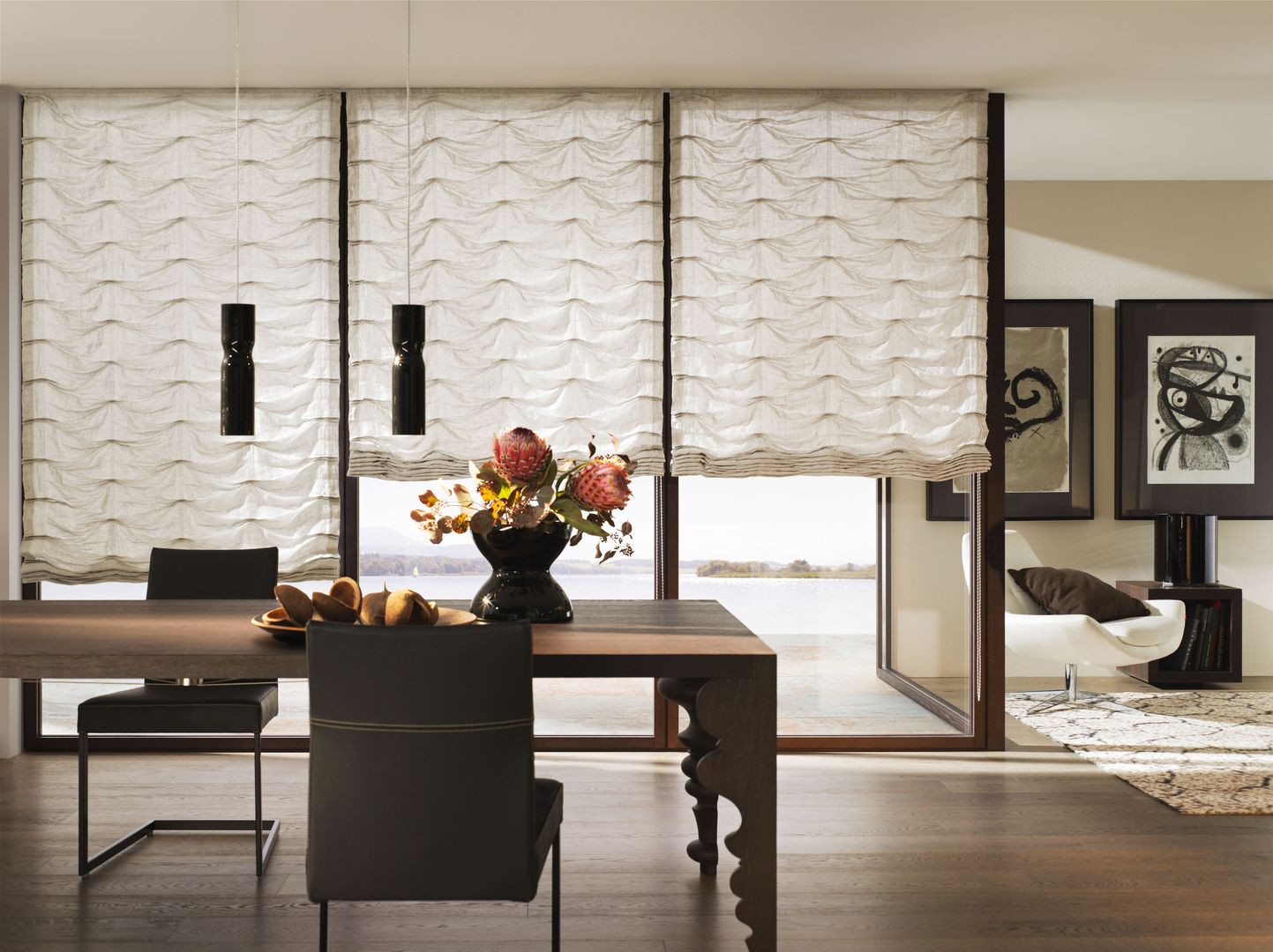 Das Raffrollo ist die perfekte Symbiose aus Technologie, Handarbeit und Kreativität. Individuell ausgewählte Stoffe werden manuell nach Maß zum Faltrollo konfektioniert und erlauben so eine flexible Raumgestaltung. Die Anwendung reicht von konventionellen Fenstern und Terrassentüren über Giebelfenster und gebogene Anlagen bis zu Dachfenstern. Besonders interessant ist, dass beim Raffstore im Gegenzug zum klassischen Vorhang links und rechts des Fensters kaum bzw. kein Platz benötigt wird, um den Stoff zu parken, da die Bahnen nur vertikal und nicht konventionell horizontal bewegt werden.